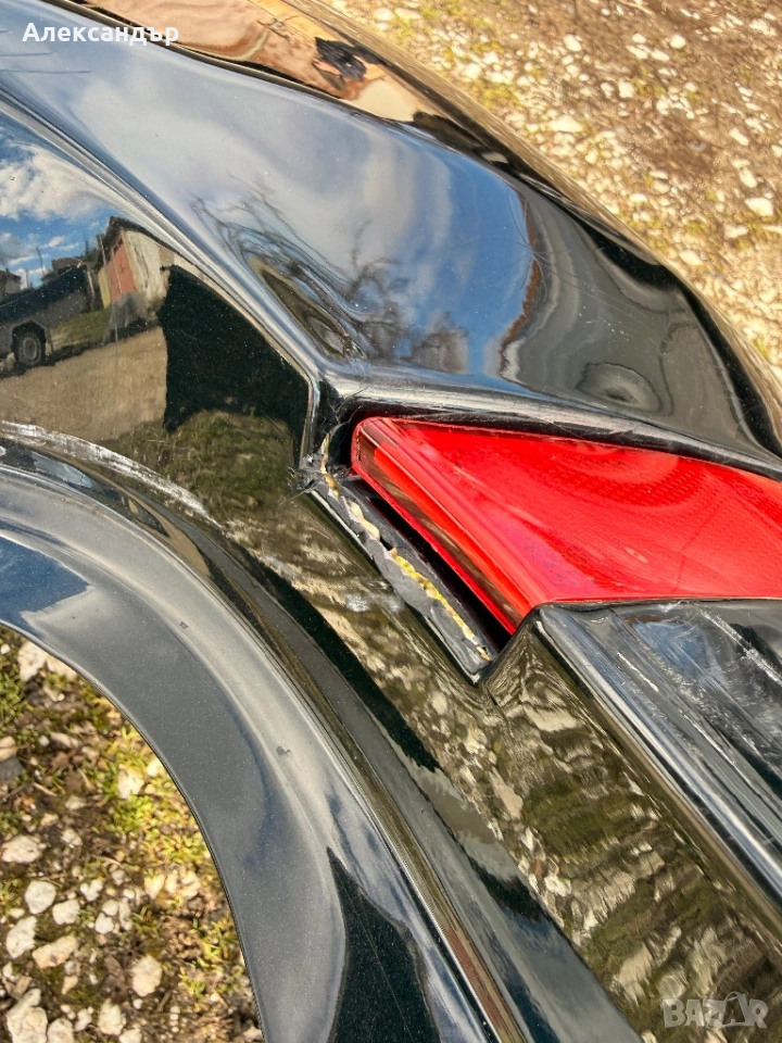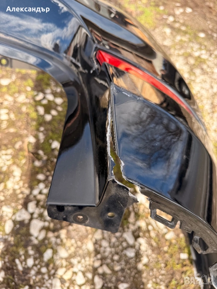 Бронята е със забележки видно от снимките и с парктрониците комплект, левия светлоотразител е счупен,но след монтажа на бронята може да се залепи!