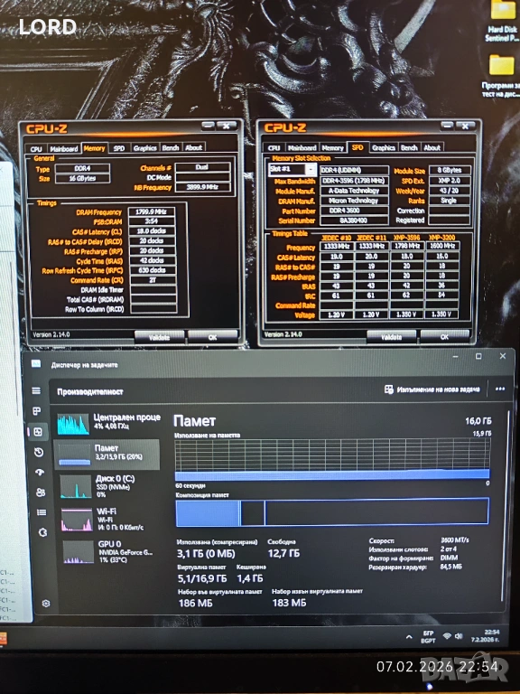 Рам памет 16GB DDR4 3600 ADATA XPG Spectrix D60G 2 X 8GB → Обява 53405619
