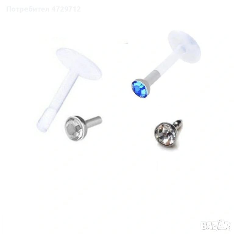Прозрачни обици за устни с кристали ухо и други части на тялото.
