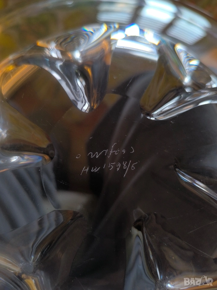 ар Деко вносна Швеция orrefors подписана ръчна изработка design инициали hw 1598/5 диаметър 34 см