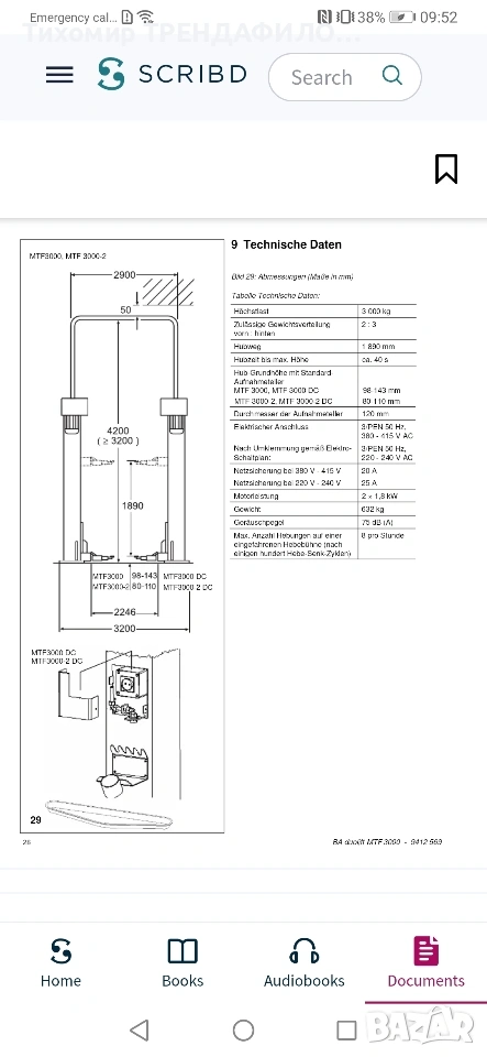 Немски винтов подемник с горна синхронизация. 3 тонен. може да се види как работи.
