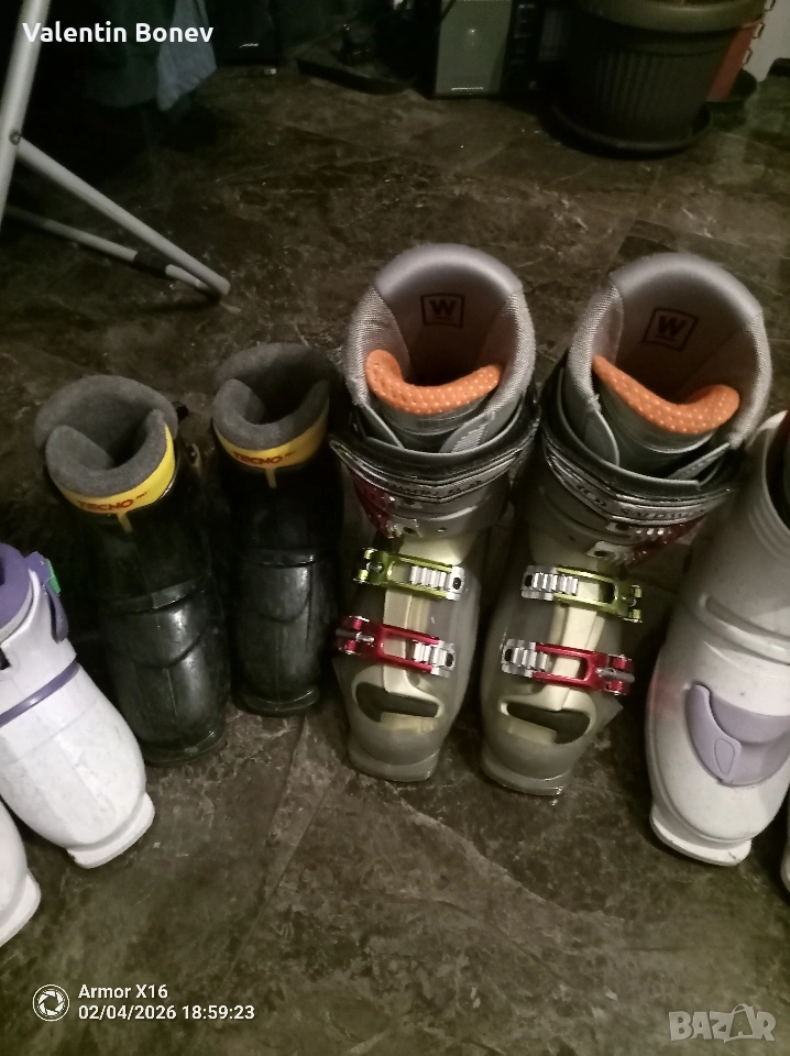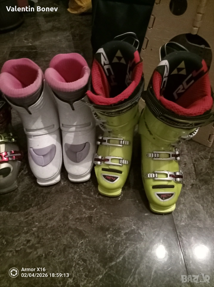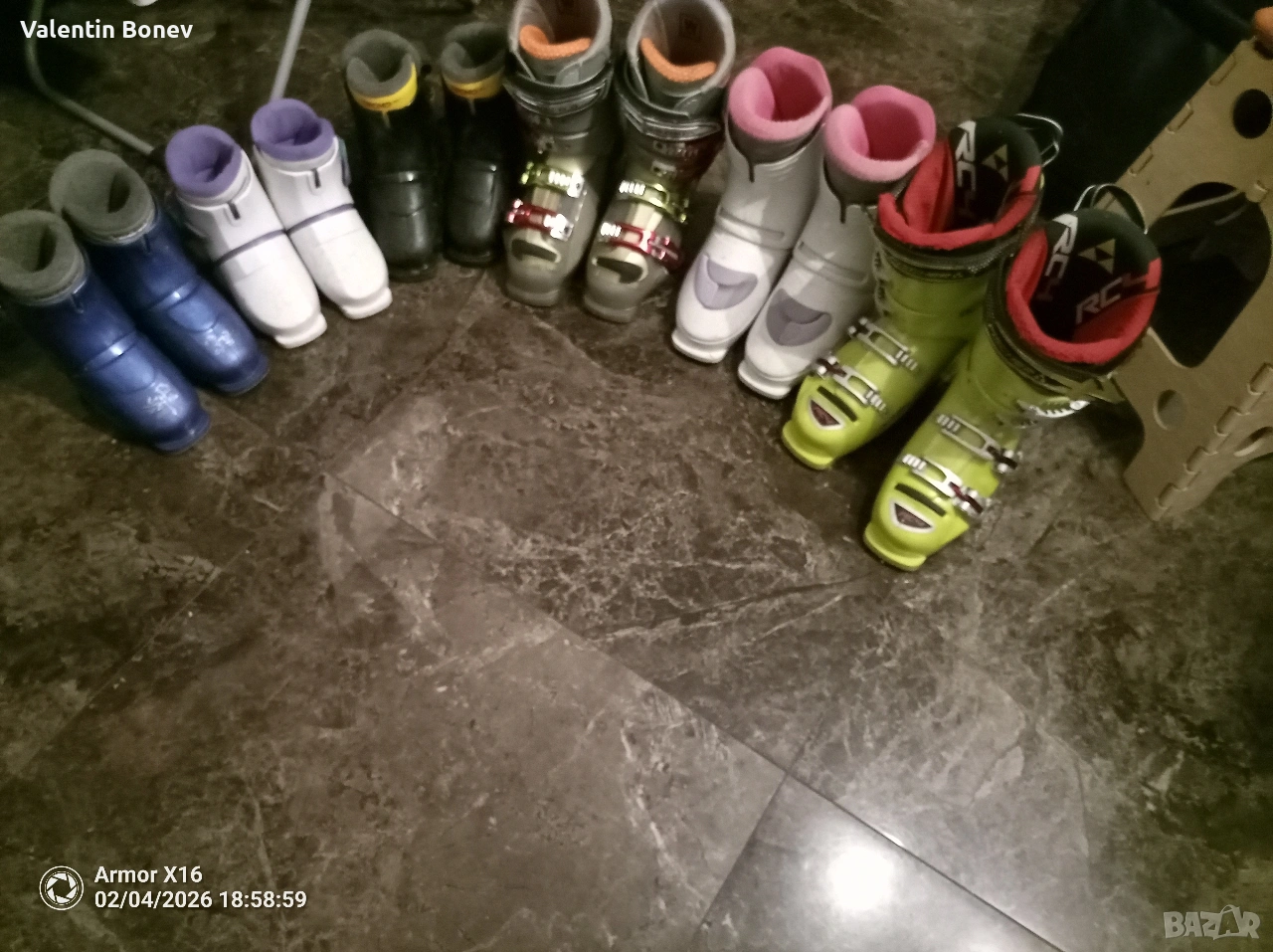 Здравейте продавам употребяван и ски обувки: Сини, бели и черни 31 номер - 20€, Сиви и бели- 38 номер 40 €, Зелени - 41 номер 60 €.