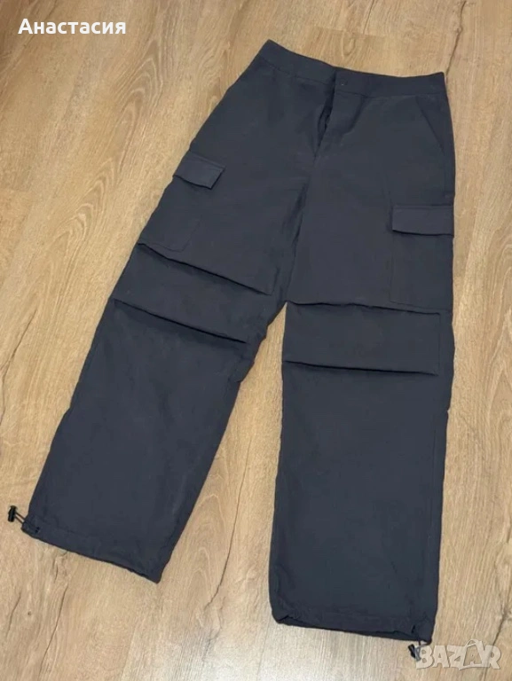 Дамски панталони тип cargo в тъмносив цвят.