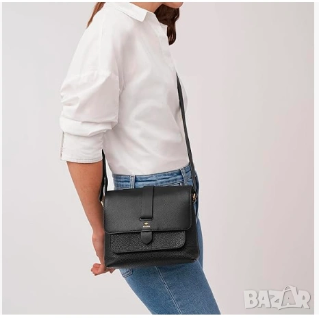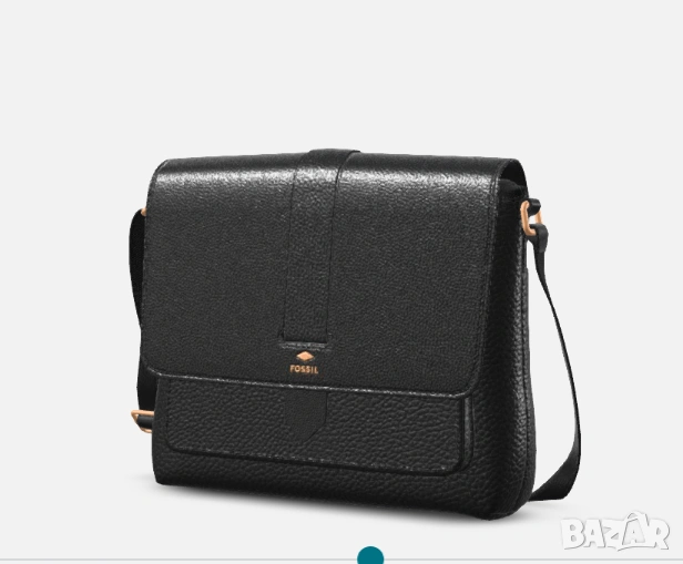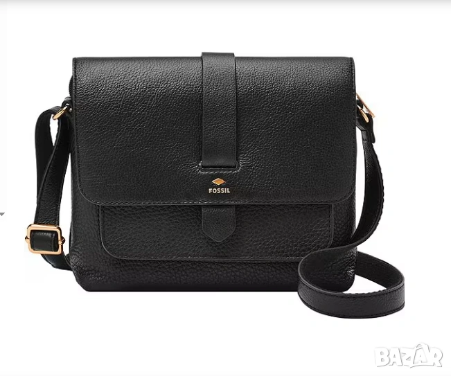 черна кожена чанта е модел Kinley Small Crossbody Bag от марката Fossil.