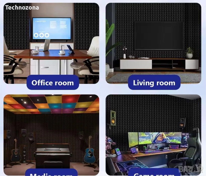 Тези панели са предназначени за подобряване на акустиката и намаляване на ехото, а не за пълна звукоизолация на помещението.