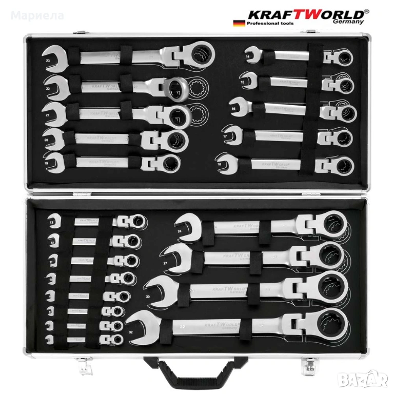 22бр. Чупещи звездогаечни тресчотъчни ключове KRAFTWORLD 6-32mm в куфар → Обява 53406780