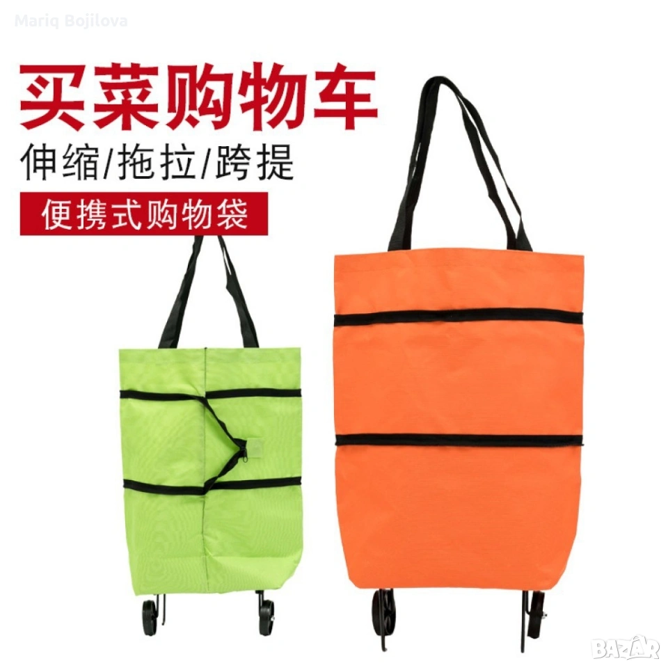 Мултифункционална сгъваема пазарска чанта с механизъм на колела. → Обява 53406826