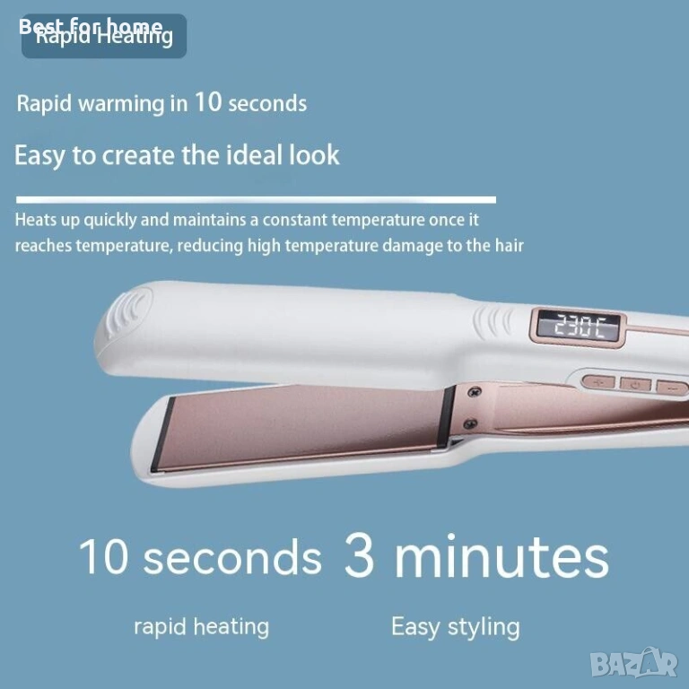 【10S бързо нагряване】: Пресата за коса с LCD дисплей и усъвършенстван PTC нагревател се нагрява за 10 секунди. Ефективно ви спестява време и бързо стилизиране.