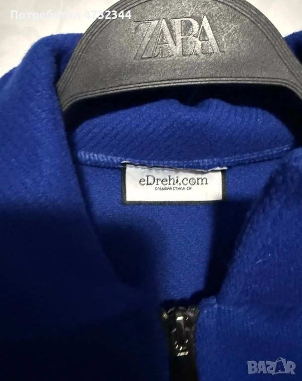 Синя връхна дреха от марката Edrehi.Никога не е обличана.Без една забележка отлично състояние.Модела седи леко овързайзд.За повече инфо на лс.