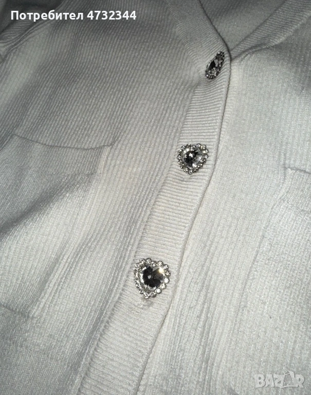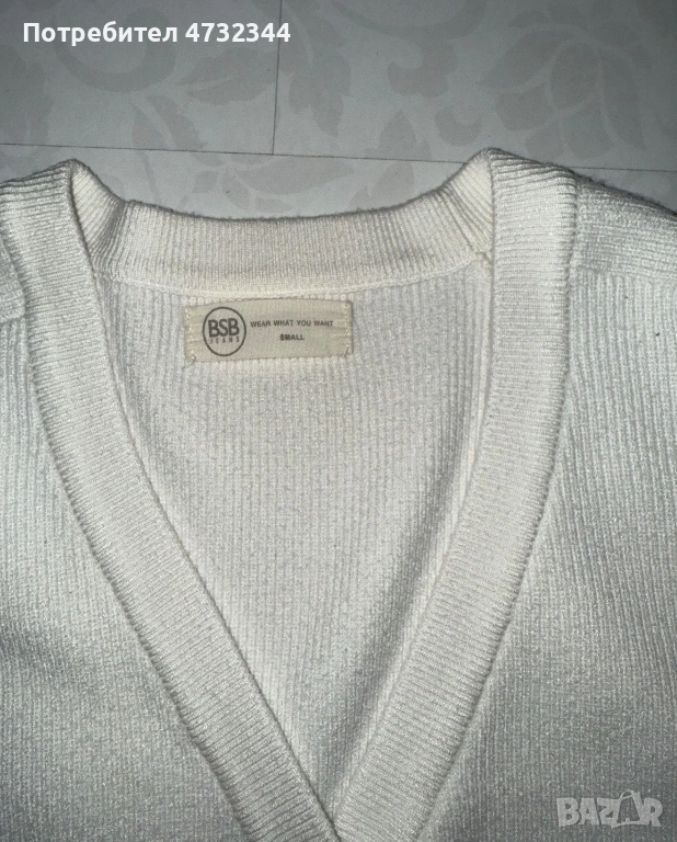 Бяла жилетка с копчета на сърца на марката BSB.Без забележки в много добро състояние купувана за над 100 лева.За повече инфо на лс.