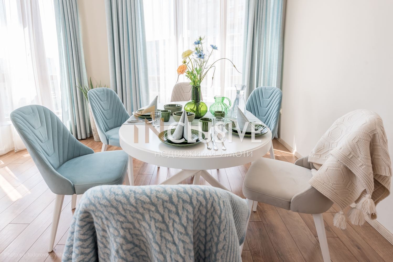 Апартаментът е обзаведен с внимание към всеки детайл, създавайки атмосфера на топлина и спокойствие. Меките цветове на мебелите и топлите тонове на декорацията превръщат всяко помещение в истински дом.