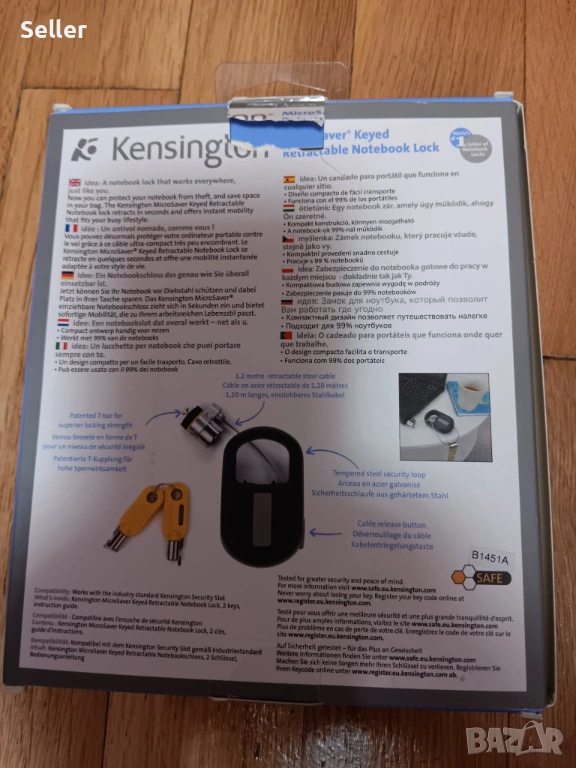 Продавам Kensington MicroSaver Keyed Retractable Notebook Lock – чисто нова, неупотребявана.