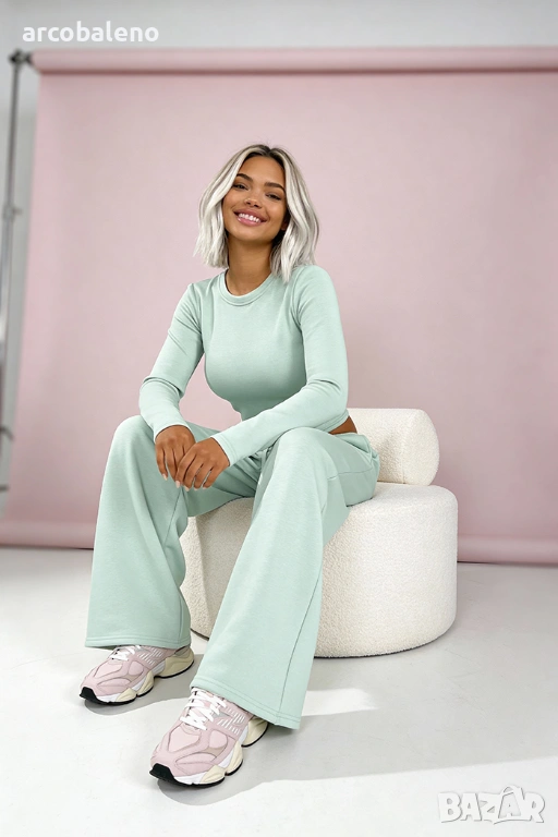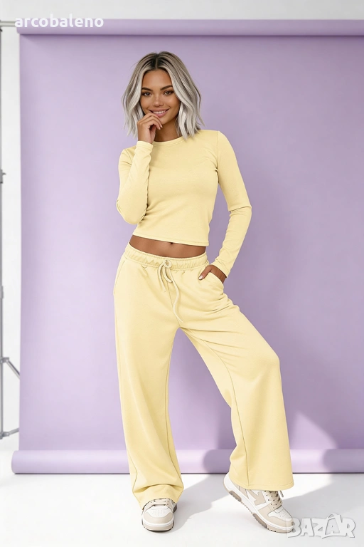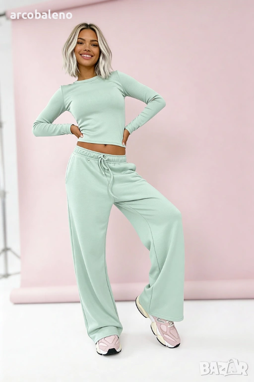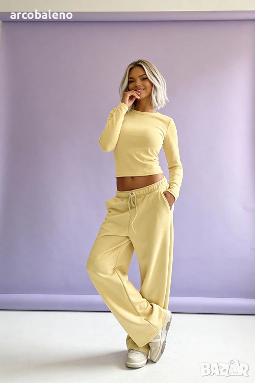 Този минималистичен комплект от вискоза е перфектната комбинация от комфорт, ежедневен стил и женственост.