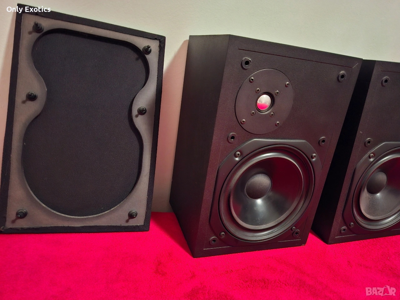 Прекрасно свирещи британци в много запазено оригинално състояние. Затворен обем. Най-високият клас на марката, известна главно с усилвателите си. На тази бройка липсват надписи отпред, но не личи да са премахвани. По мое мнение са доста по-красиви така.