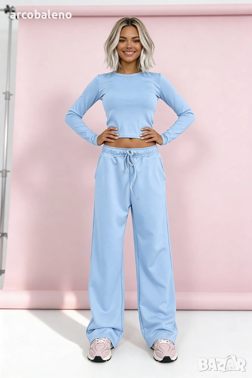 Широки панталони + вталена блуза. Материята съдържа 50% вискоза!
