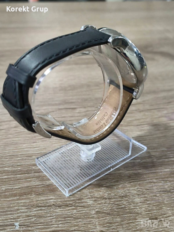 от колекция Luigi е въплъщение на класическия стил. Със своя черен циферблат и елегантна черна кожена каишка, той е задължителен аксесоар за всеки, който цени изтънчеността и функционалността. Контрастът между сребристия полиран корпус от благородна стомана и дълбоко черния дисплей създава мощен и универсален външен вид.