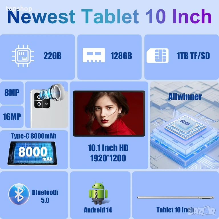 НОВ 2-в-1 Таблет-Лаптоп 10" MIRGAMO – Android 14 – 22GB RAM / 128GB – Full HD – Netflix HD