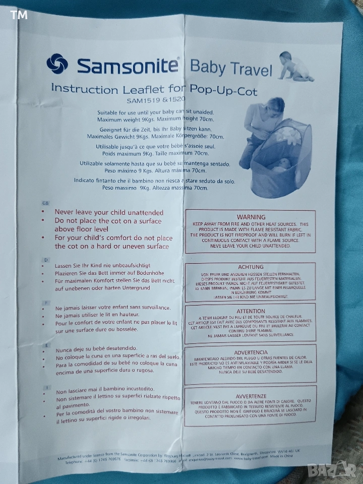 Сгъваема кошара с комарник Samsonite → Обява 53407753