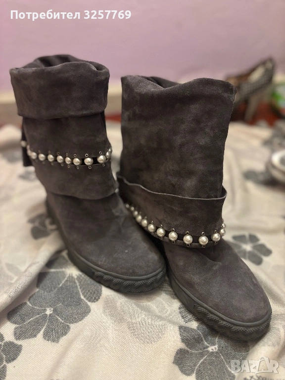 Нови боти-ботуши Casaday велурени с перлички