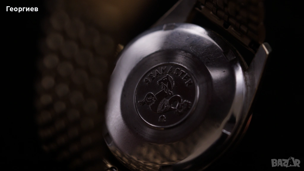 Капакът на гърба показва честно износване от носене, като медальонът Seamaster (хипокампус) остава ясно видим.