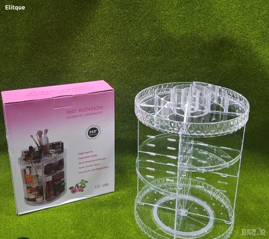Въртящ се органайзер за козметика GW-288 – 360° Практичен и стилен въртящ се органайзер, създаден за перфектно подреждане и удобно съхранение на козметика, гримове и аксесоари. Благодарение на въртенето на 360 градуса осигурява бърз и лесен достъп до всички продукти, без да се налага разместване. Прозрачният дизайн позволява лесно откриване на нужния продукт и се вписва отлично във всякакъв интериор – баня, тоалетка или спалня. Характеристики: Модел: GW-288 Въртене: 360 градуса Материал: PS пластмаса Цвят: прозрачен Размери: 23 × 23 × 32 см Предимства: Отлична организация на козметиката Пълен достъп до продуктите чрез въртене Компактен и елегантен дизайн Подходящ за гримове, кремове, парфюми и аксесоари Лесен за почистване Доставка с Еконт с опция преглед до 3 работни дни.