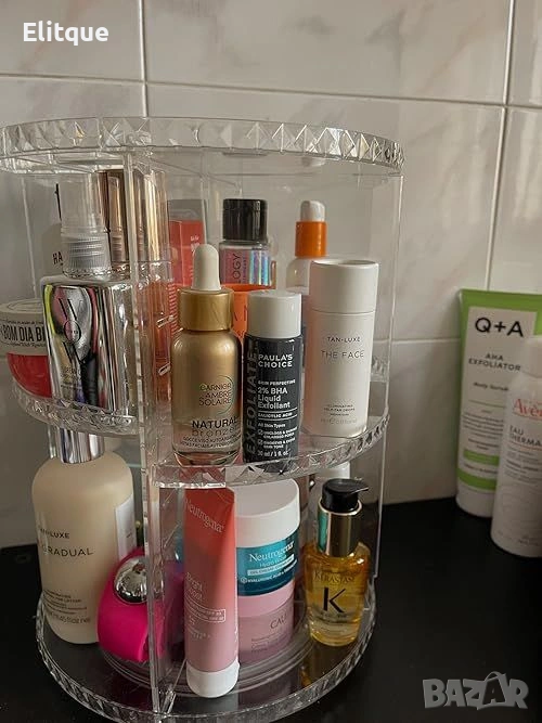 Въртящ се органайзер за козметика GW-288 – 360° Практичен и стилен въртящ се органайзер, създаден за перфектно подреждане и удобно съхранение на козметика, гримове и аксесоари. Благодарение на въртенето на 360 градуса осигурява бърз и лесен достъп до всички продукти, без да се налага разместване. Прозрачният дизайн позволява лесно откриване на нужния продукт и се вписва отлично във всякакъв интериор – баня, тоалетка или спалня. Характеристики: Модел: GW-288 Въртене: 360 градуса Материал: PS пластмаса Цвят: прозрачен Размери: 23 × 23 × 32 см Предимства: Отлична организация на козметиката Пълен достъп до продуктите чрез въртене Компактен и елегантен дизайн Подходящ за гримове, кремове, парфюми и аксесоари Лесен за почистване Доставка с Еконт с опция преглед до 3 работни дни.