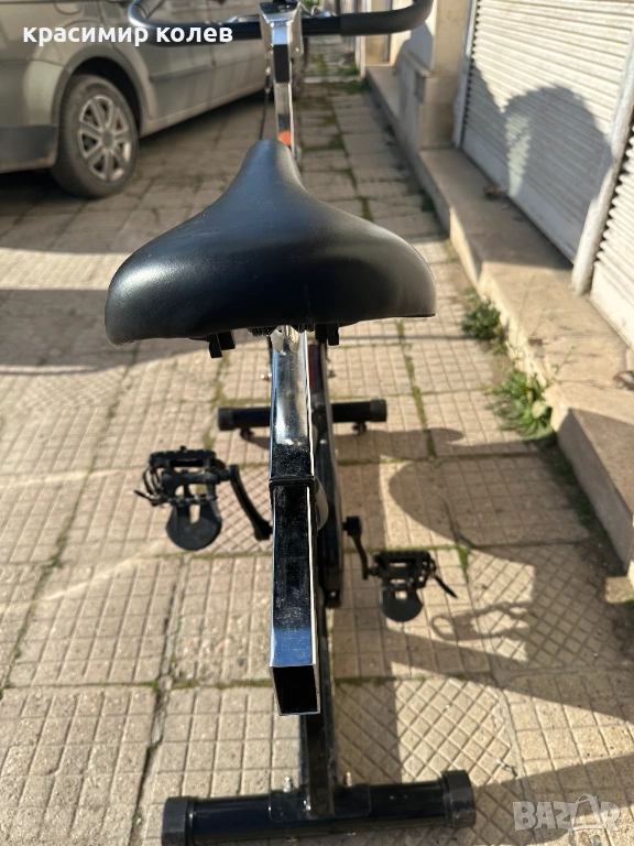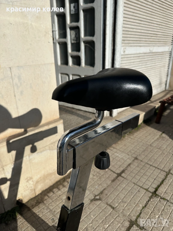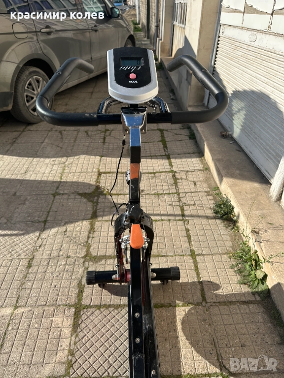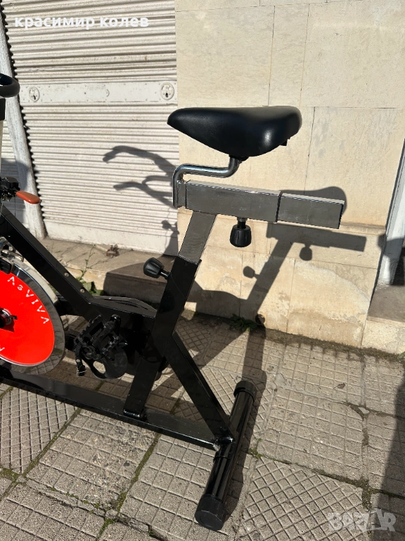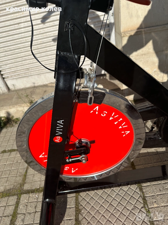 Дизайн и конструкция: Здрава стоманена рамка в черен цвят. Вижда се големият маховик (flywheel) отпред с характерния червен предпазител, който осигурява инерция и плавност на движението.