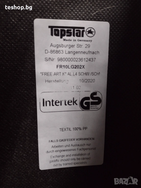 Подходящ за частна и търговска употреба, препоръчително максимално време на седене: 8 часа; сертифициран по GS и отговаря на EN 1335 1-3.