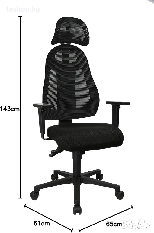 Офис стол Topstar Free Art с ергономичен дизайн, черен, 61 x 65 x 143 см