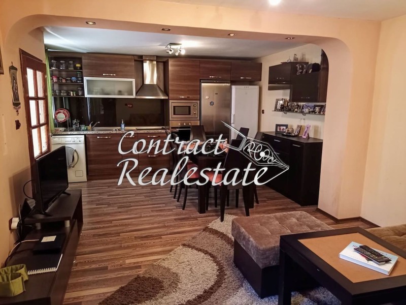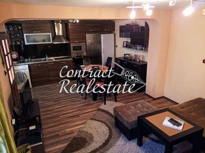 Представяме ви двустаен етаж от къща в района на Колхозен пазар. Апартамента се състои от антре, дневна зона,обединена с просторна кухня с трапезария, спалня, баня с тоалет и тераса. Жилището е оборудвано с всички необходими електроуреди , климатик. Подходящ за двойка, семейство или сам човек. Номер на имота 15503.