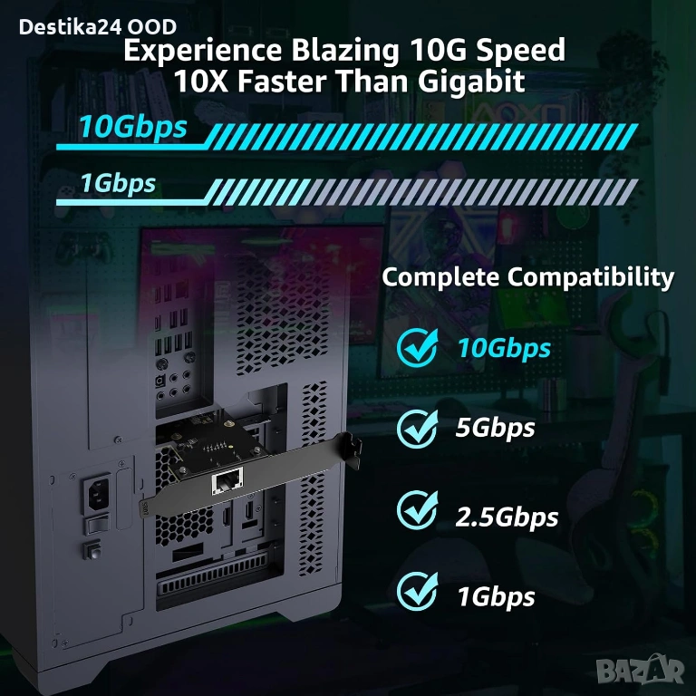 10G мрежова карта, 10Gbps LAN карта, PCIe Ethernet карта, RJ45 10G адаптер, мрежова карта за сървър, 10G NIC карта, LAN карта за компютър, високоскоростна мрежова карта, PCIe мрежов адаптер, YuanLey мрежова карта