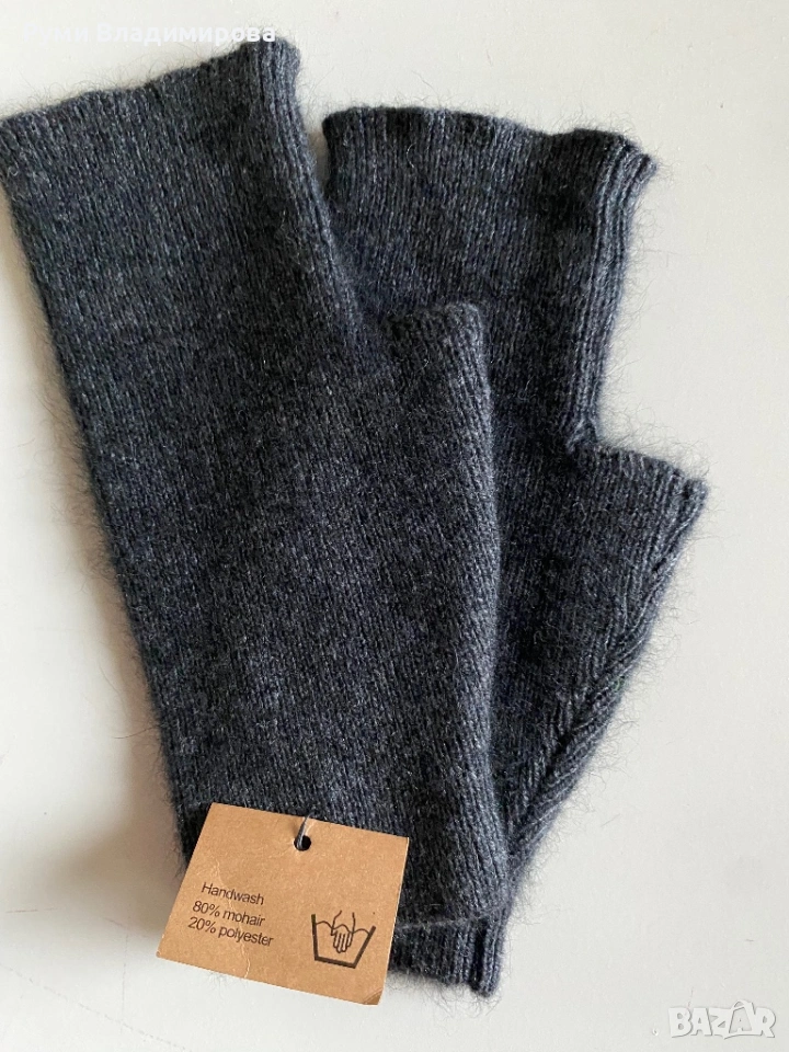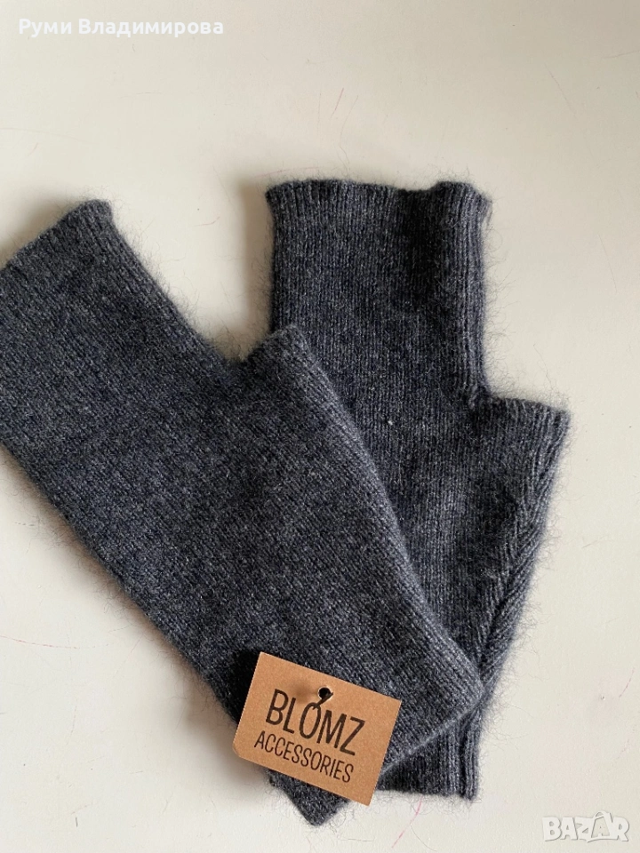 Тъмносиви ръкавички без пръсти Blomz, състав 80% мохер и 20% полиестер, с етикет, меки и топли, могат да станат на всички размери, доставка с Еконт.
