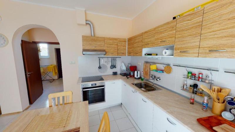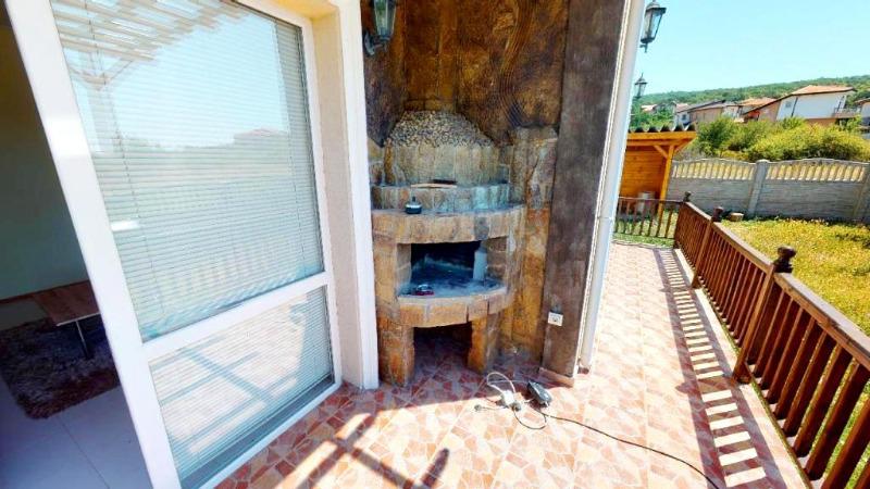 Двуетажна къща на тихо и спокойно място във вилната зона на к.к Слънчв бряг - Кошарица, на 5 мин. с автомобил от морския бряг. Построена в парцел от 540 кв.м., с площ от 155 кв.м. разпределена на две нива, като на първи етаж - просторна и светла дневна с трапезария и кухня (камина с водна риза), баня с wc, мокро помещение, коридор, вътрешно стълбище, веранда с излаз на двора (барбекю). Втори етаж - две спални, едната с дрешник, баня с wc, тераса с прекрасна гледка към склоновете на Стара планина. Напълно обзаведена и оборудвана с нови мебели и техника. Гараж, озеленен двор, барбекю, помощна постройка. Подходяща за постоянно живеене, летуване и отдаване под наем!!!