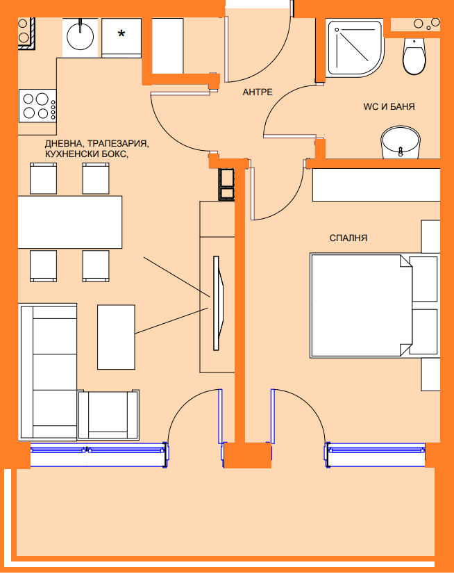 Двустаен апартамент до ключ , на 400 м от разкошен плаж!!!