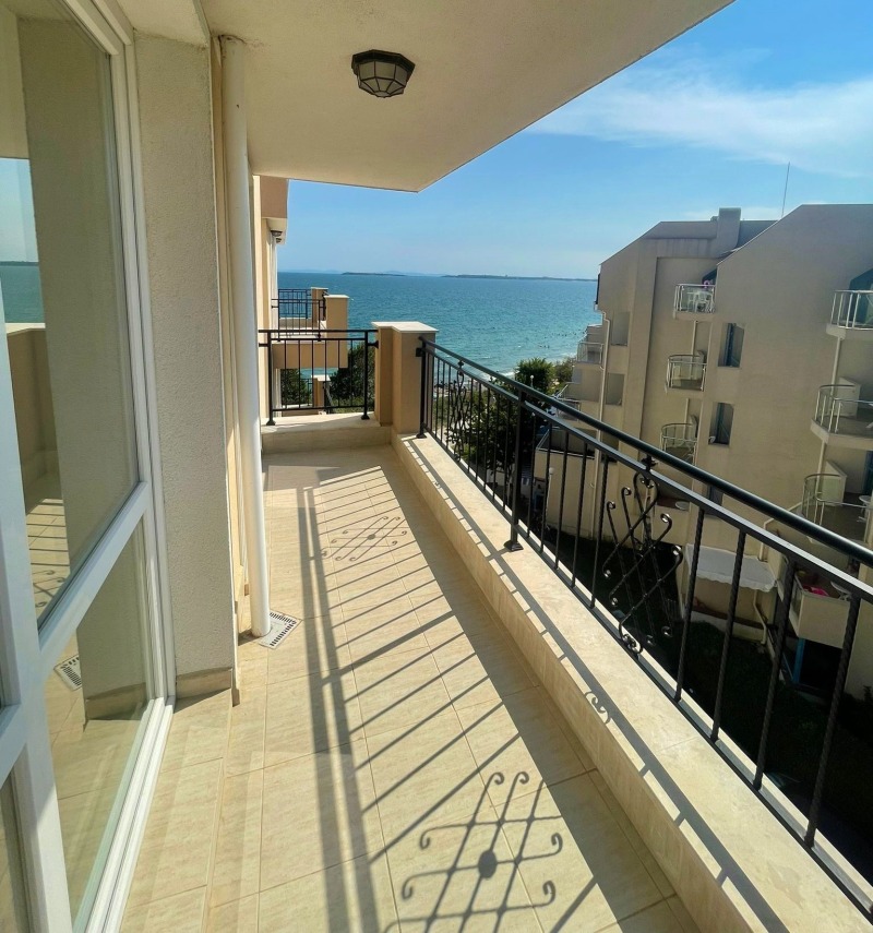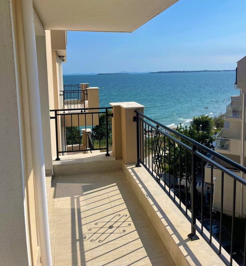 Марина Реал, предлага за продажба двустаен апартамент на тихо и спокойно място, на самия бряг в гр. Свети Влас, в района на Централен плаж и яхтеното пристанище. Жилището е в нова сграда с А 16, в малък затворен комплекс от затворен тип, на четвърти реален етаж /асансьор/, с площ от 58 кв.м. и разпределение - просторна и светла дневна с трапезария и кухня, спалня, коридор, баня с wc, тераса с прекрасна фронтална гледка към морето и територията на комплекса. Завършено до ключ с подови настилки - ламинат и теракота, стени - боя, напълно оборудвани бани с wc. Изложение - югозапад. Подземен паркинг!!! Подходящо за постоянно живеене, летуване, отдаване под наем. Годишна такса поддръжка - 250 евро.