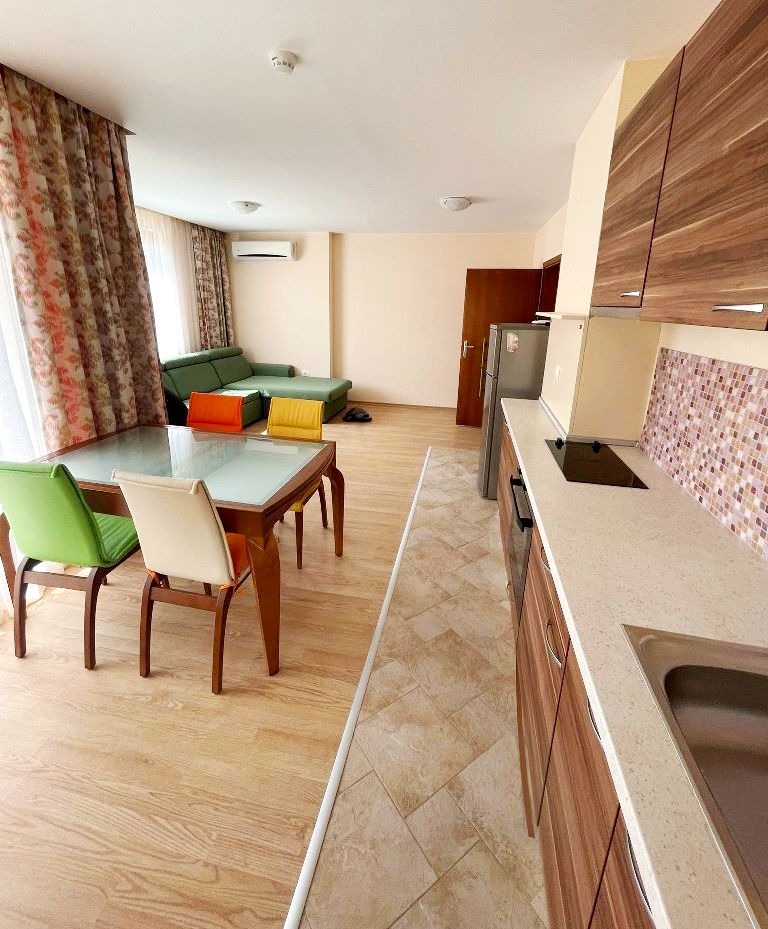 Марина Реал предлага за продажба, двустаен апартамент на тихо и спокойно място в северната част на гр. Свети Влас, на самата разкошната плажна ивица. Жилището е в комплекс - затворен тип, построен на южен склон на Стара планина, с площ от 80 кв.м. и разпределение - просторна и светла дневна с трапезария и кухня, спалня, баня с wс, коридор, веранда с прекрасна гледка към територията на комплекса и планината. Напълно обзаведено и оборудвано. Територията на комплекса - красиво озеленена, алеи, външни и вътрешен басейни, ресторанти, барове, супермаркет, СПА център, фитнес, тенис кортове, спортни и детски площадки, открит и закрит паркинг, видеонаблюдение и охрана. Годишна такса поддръжка - 1200евро. Имот подходящ за постоянно живеене, отдаване под наем и дългосрочна инвестиция!!!