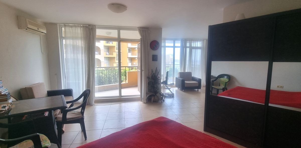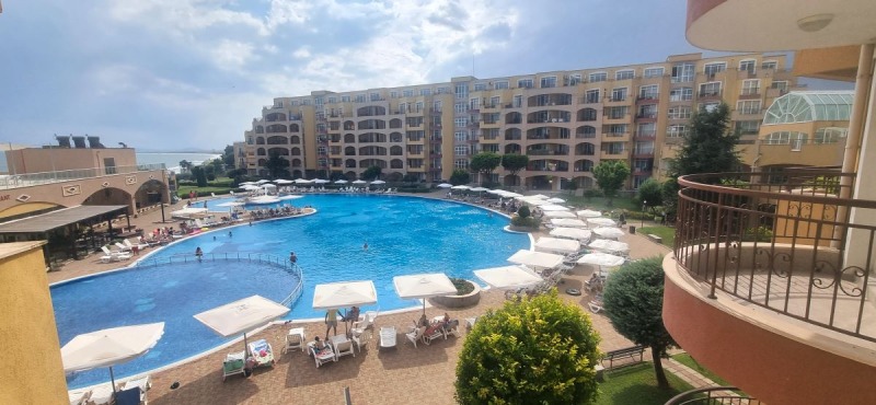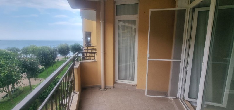 Марина Реал, предлага за продажба двустаен апартамент на живописно, тихо и спокойно място в гр. Ахелой, на самия морски бряг. Жилището е нова сграда, в комплекс - затворен тип, на трети етаж /асансьор/, с площ от 81.91 кв.м. обособена в отворено пространство с разпределение - просторна и светла дневна с кухня и трапезария, спалня, баня с wc, две тераси с разкошна гледка към морето и територията на комплекса. Напълно обзаведено и оборудвано. Изложение - югоизток. Подходящо за летуване, отдаване под на наем и постоянно живеене!!! На територията на комплекса: красиво озеленена територия, два басейна с детска зона и водни пързалки, бар, ресторант, лоби бар, супермаркет, рецепция, охрана, паркинг. Годишна такса поддръжка - 10 евро/кв.м.!
