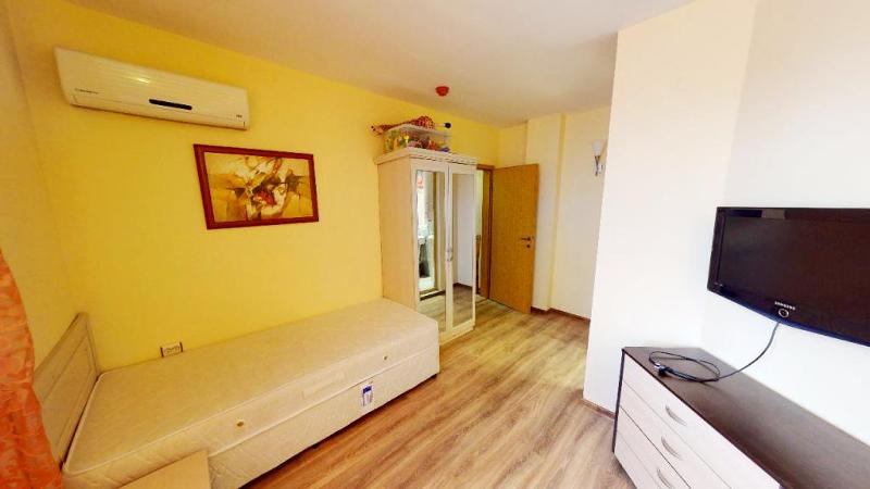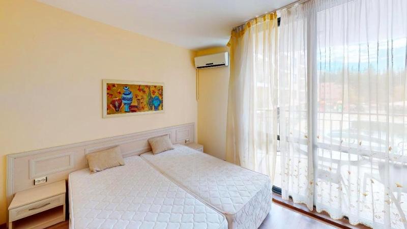 Тристаен апартамент на тихо и спокойно място в централната част к.к. Слънчев бряг, на 500 м. от разкошната плажна ивица. Жилището е в нова сграда, в комплекс - затворен тип, на втори етаж /асансьор/, с площ от 89 кв.м. и разпределение - просторна и светла дневна с трапезария и кухня, две сплани, едната със самостоятелна баня с wc, баня с wc, коридор, тераса с гледка към територията на комплекса. Напълно обзаведено и оборудвано бтри климатика, съдомиялна и перална машина/, изложение - изток. На територията на комплекса - басейн, детска площадка, градина, бар, охрана. Отлично инвестиционно предложение!!!