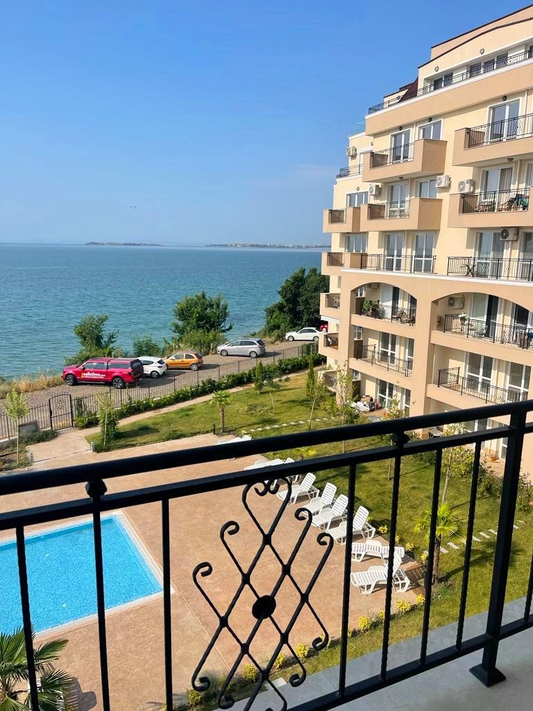 Марина Реал, предлага за продажба двустаен апартамент на тихо и спокойно място, на самия бряг в гр. Свети Влас, в района на Централен плаж . Жилището е в нова сграда с А 16, в малък затворен комплекс от затворен тип, на трети етаж /асансьор/, с площ от 65.05 кв.м. и разпределение - просторна и светла дневна с трапезария и кухня, спалня, коридор, баня с wc, тераса с прекрасна гледка към морето и територията на комплекса. Напълно обзаведено и оборудвано с нови мебели и уреди висок клас. Изложение - югоизток. Подземен паркинг!!! Подходящо за постоянно живеене, летуване, отдаване под наем. Годишна такса поддръжка - 250 евро.