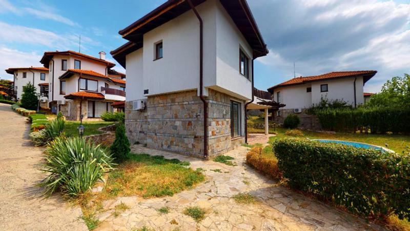 Двуетажна къща на тихо и спокойно място в с. Кошарица, в подножието на източните склонове на Стара планина, на 1 км. от к.к Слънчев бряг и разкошната плажна ивица. Къщата е самостоятелна, построена в обособен двор - 500 кв.м, част от територията на затворен комплекс. Площта от 212 кв.м е разпределена на две нива, като на първи етаж - просторна и светла дневна с трапезария и кухня /оборудвана/, веранда с излаз към красиво озеленен двор и басейн, спалня със самостоятелна баня с wc /душкабина/, wc, две складови помещения, стълби към втория етаж. Втори етаж - вестибюл с кухня, две спални всяка със самостоятелна баня с wc /душкабина или вана и ниша за гардероб/, открита и закрита веранда с прекрасна гледка към морето и планината. Завършена до ключ с напълно оборуднани бани с wc. СОТ, видеонаблюдениe. Изложение - югоизток. Подходяща за постоянно живеене и летуване!!!