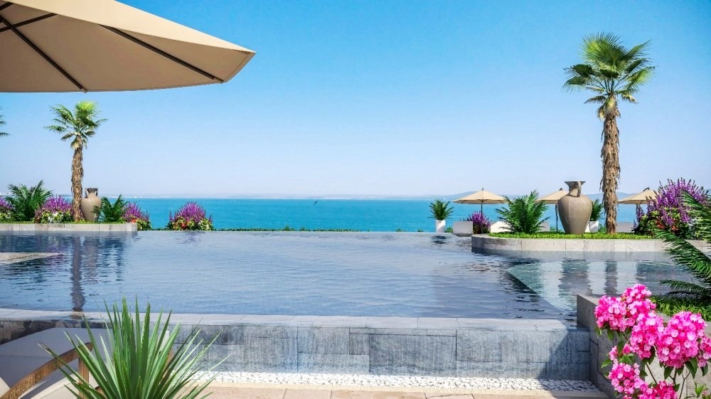 Открит инфинити басейн с панорамна гледка към Бургаския залив