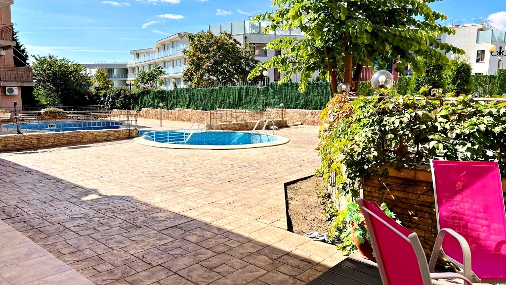 Марина Реал, предлага за продажба таунхаус на тихо и спокойно място в югоизточната част на гр. Свети Влас, на 50 м. от разкошната плажна ивица. Жилището е в комплекс - затворен тип /А16/, с площ от 110 кв.м. разпределена на две нива, като на първо ниво - просторна и светла дневна с трапезария и кухня, баня с wс, коридор, веранда с излаз към двора /барбекю зона и басейн/. Второ ниво - две спални /едната със самостоятелна баня с wc/, коридор, две тераси. Напълно обзаведено и оборудвано. Територията на комплекса - красиво озеленена, басейн, паркинг, видеонаблюдение. Годишна такса поддръжка - 400 евро. Район - магазини, ресторанти, удобен градски транспорт. Подходящо за постоянно живеене и отдаване под наем!!!