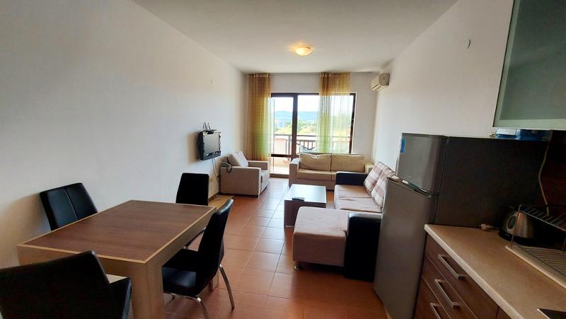 Двустаен апартамент на тихо и спокойно място във вилната зона на гр. Черноморец, в комплекс Свети Никола ****, разположен на разкошната плажна ивица на Царския залив . Жилището е на трети етаж, с площ от 70 кв.м. и разпределение - просторна и светла дневна с трапезария и кухня, спалня, баня с wc, коридор, две тераси с прекрасна гледка към морето и склоновете на Странджа планина. Напълно обзаведено и оборудвано. Изложение - югозапад. Подходящо за летуване и отдаване под наем. Отлично инвестиционно предложение!!! Годишна такса поддръжка - 490 евро.