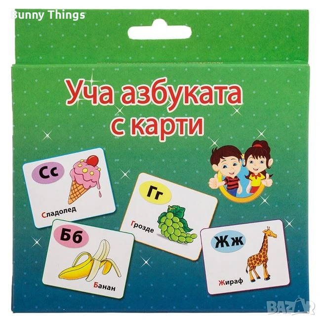 Забавен и полезен комплект образователни карти, който помага на децата да научат българската азбука по лесен и интересен начин. Чрез цветни изображения и букви, картите стимулират паметта, вниманието и ранните умения за четене.