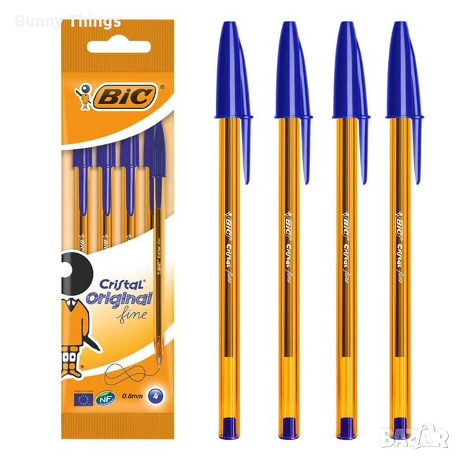 Химикалка BIC Cristal Fine, синя 0.8mm - 4 бр. → Обява 53409709