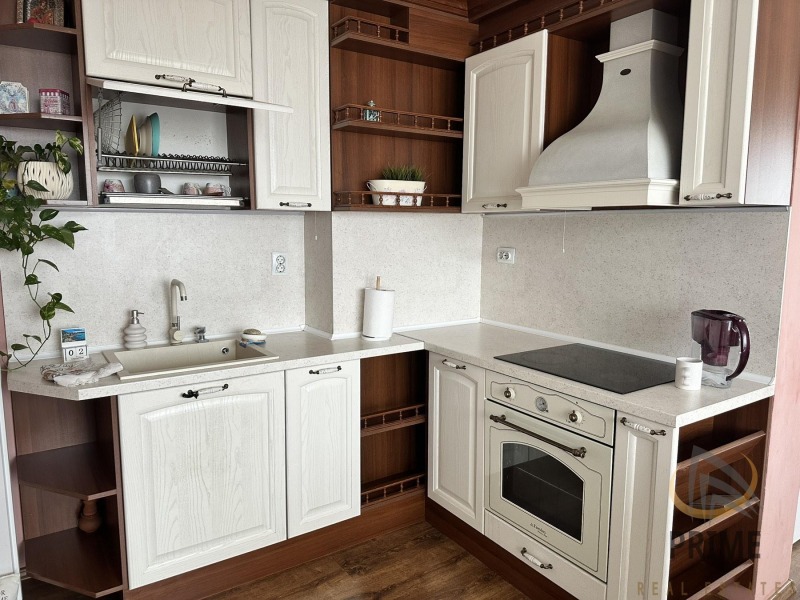 Нов, напълно обзаведен двустаен апартамент с отделна кухня под наем, разположен в санирана тухлена сграда в топ центъра на град Бургас, до ПМГ. В сграда с асансьор.