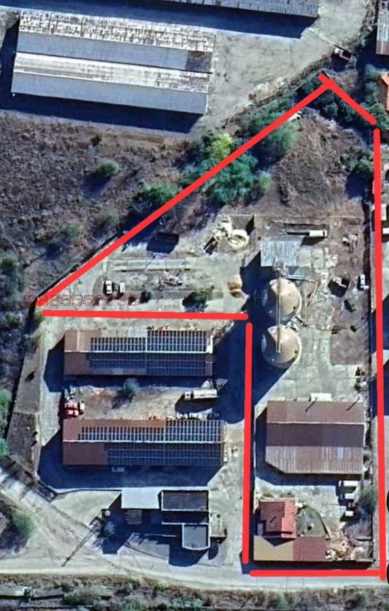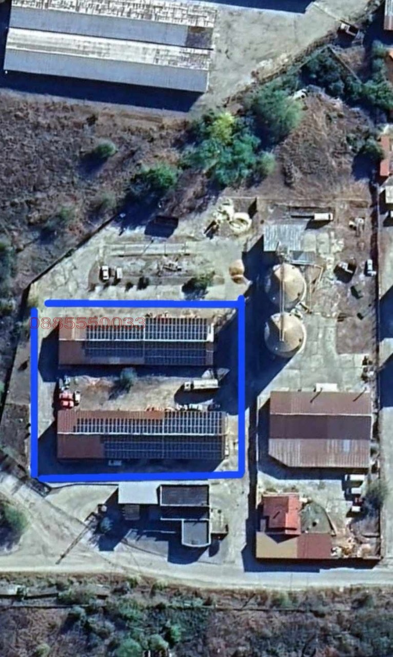 При интерес в съседни 2 бр. имоти има построени 2 бр. плоски склада с изградена Фотоволтаична Централа за производство и продажба на ток , произведени от възобновяем източник, с мощност от 185 kw. Енергията произведена от тази централа покрива нуждите на предприятието, а неизразходената енергия има сключен договор и се продава на Свободния пазар за електроенргия. Плосък склад 1 = Земя- 1329 кв.м. ; Сграда = 634 кв.м. Плосък склад 2 = Земя 1661 кв. м. ; Сграда = 585 кв. м. ЦЕНА 1 000 000 лв без ДДС Общо всичко като земя и сгради е: Земя=9883кв.м. и Сгради=2233кв.м. с ЦЕНА 2 350 000 лв. , тел.: 0885550033
