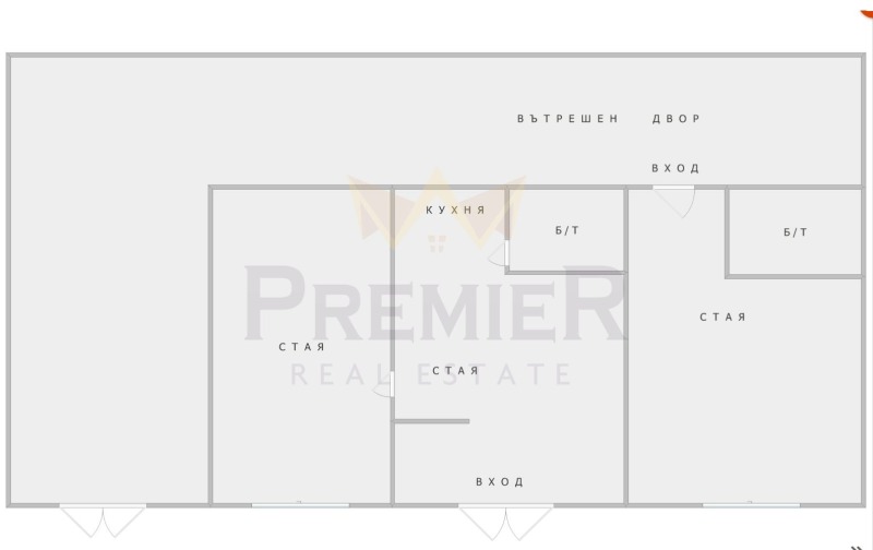 Имотът е разположен на партерно ниво в 4- ри етажна тухлена сграда.На обща площ от 60 кв.м. са обособени в две самостоятелни жилищни помещения с битов ток и отделни партиди. Първото е с вход от към главната улица, представлява преддверие, стая с кухненски кът, преходна втора стая, едно санитарно помещение. Вторият имот е с вход през вътрешен двор за общо ползване. Представлява преддверие, стая и санитарно помещение. И трите стаи са с лице на главна улица, входните врати са обезопасени с външна ролетна щора. Два нови климатика.
