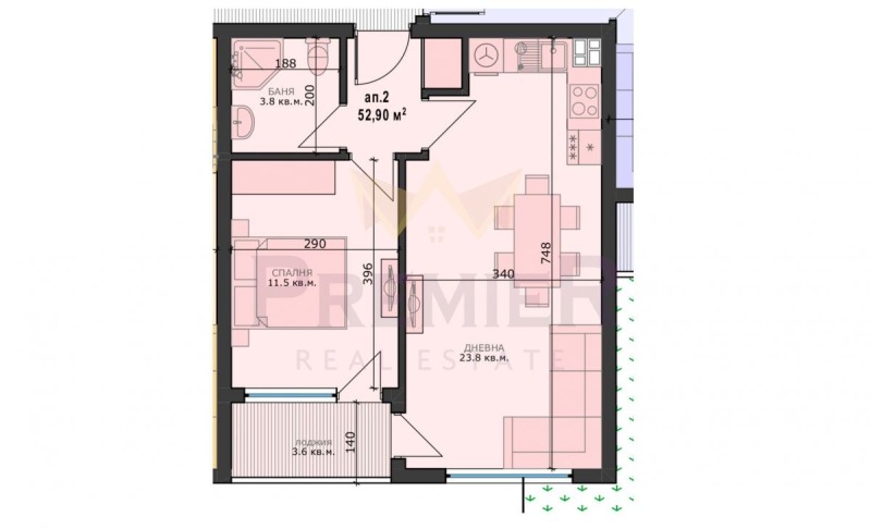 Просторна дневна с кухненски бокс 23.8 кв.м