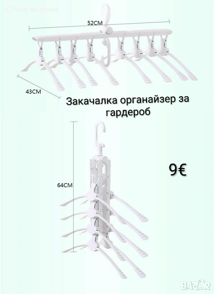 8в1 закачалка за дрехи, многослойна, сгъваема, от пластмаса, неплъзгаща се, която се върти на 360 градуса и ще ви спести много място при съхранението на дрехите ви, а може да бъде използвана и като сушилник. Закачалката е изработена в бял цвят, който е съвместим с всеки вид интериорен дизайн и гардероби.